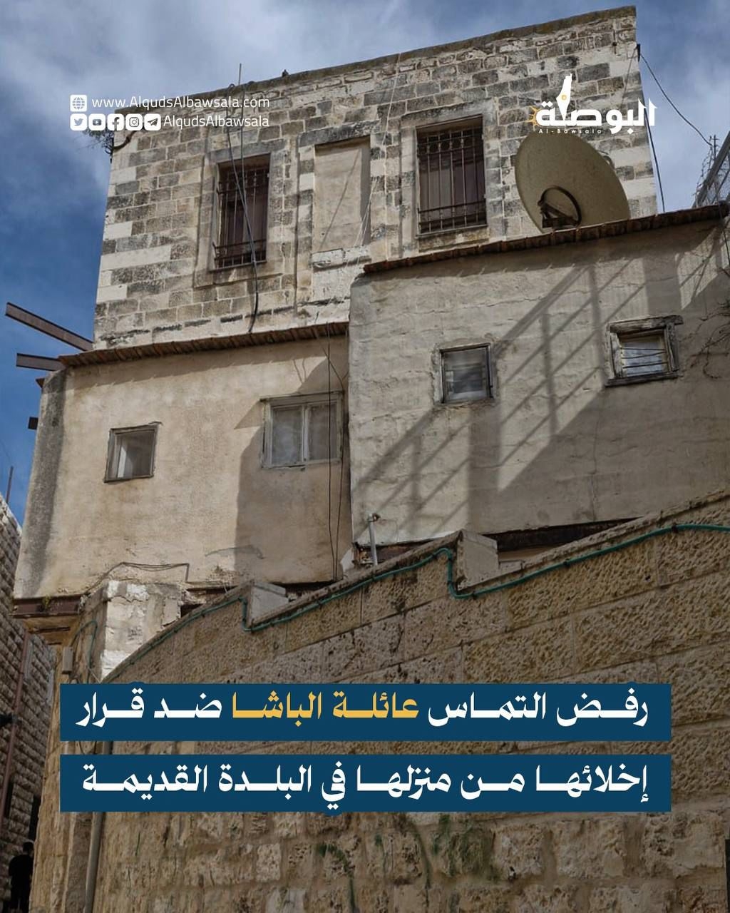 رفضت المحكمة المركزية الإسرائيلية في القدس، الثلاثاء الماضي، الاستئناف الذي تقدمت به عائلة باشا المقدسية ضد قرار إخلاءها من منزلها التاريخي في البلدة القديمة.