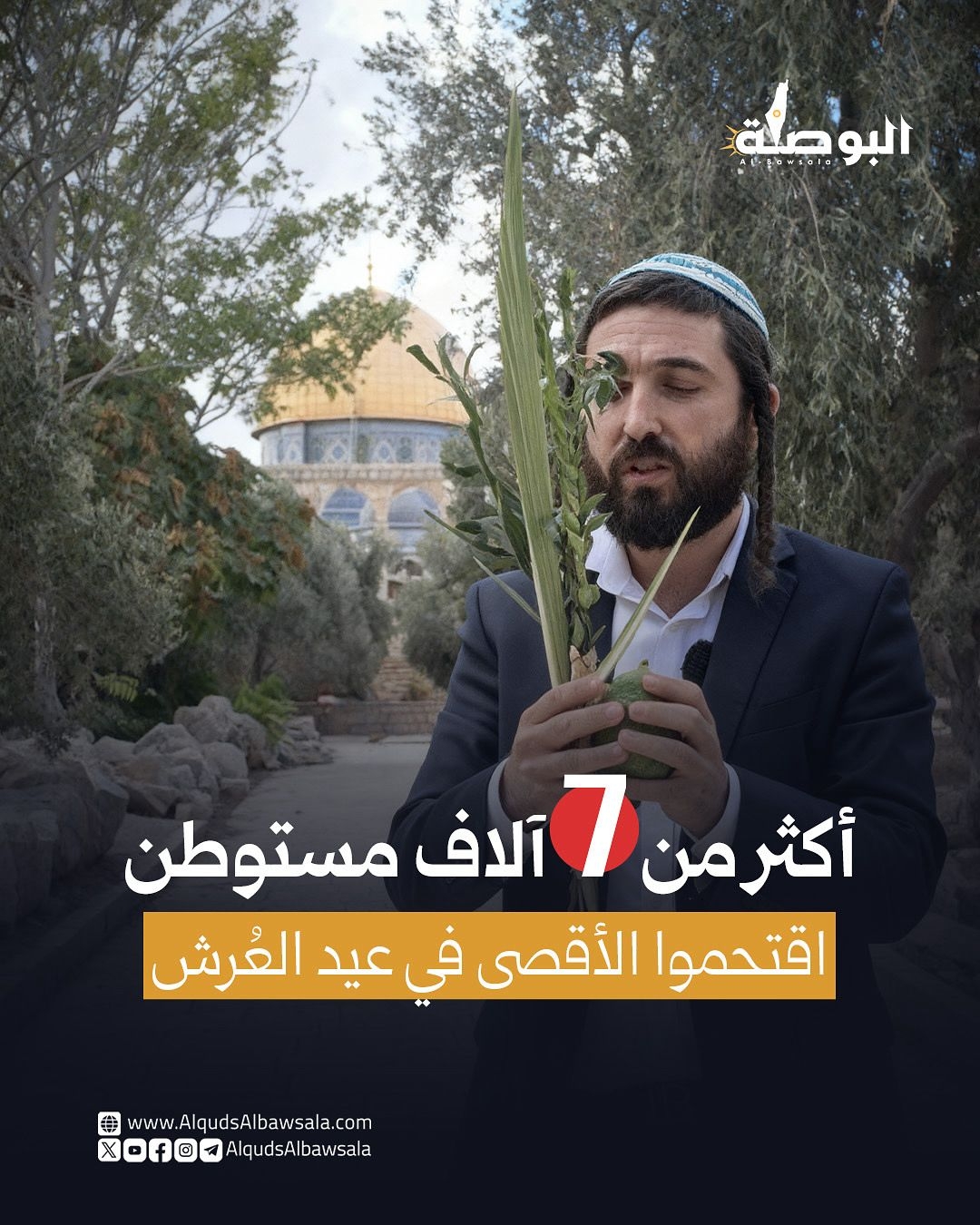 مع إغلاق باب المغاربة، ظهر اليوم، اقتحم المسجد على مدار 5 أيام، 7119 مستوطنا؛ احتفالا بعيد العُرش اليهودي، حيث قدموا يوميا القرابين النباتية، بشكل جماعي وعلني يحدث لأول مرة في الأقصى.
