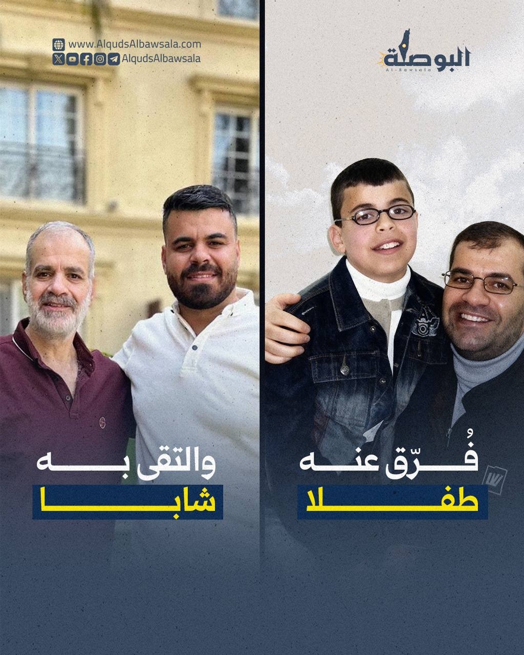 صورة انتُظرت 30 عاما! الشاب المقدسي محمد (30 عاما) يلتقي - في مصر- بوالده الأسير أيمن سدر (59عاما)، بعد تحرره أمس في صفقة طوفـ.ـان الأحرار، حيث اعتقله الاحتلال عام 1995، وعُمر طفله الوحيد 4 أشهر.