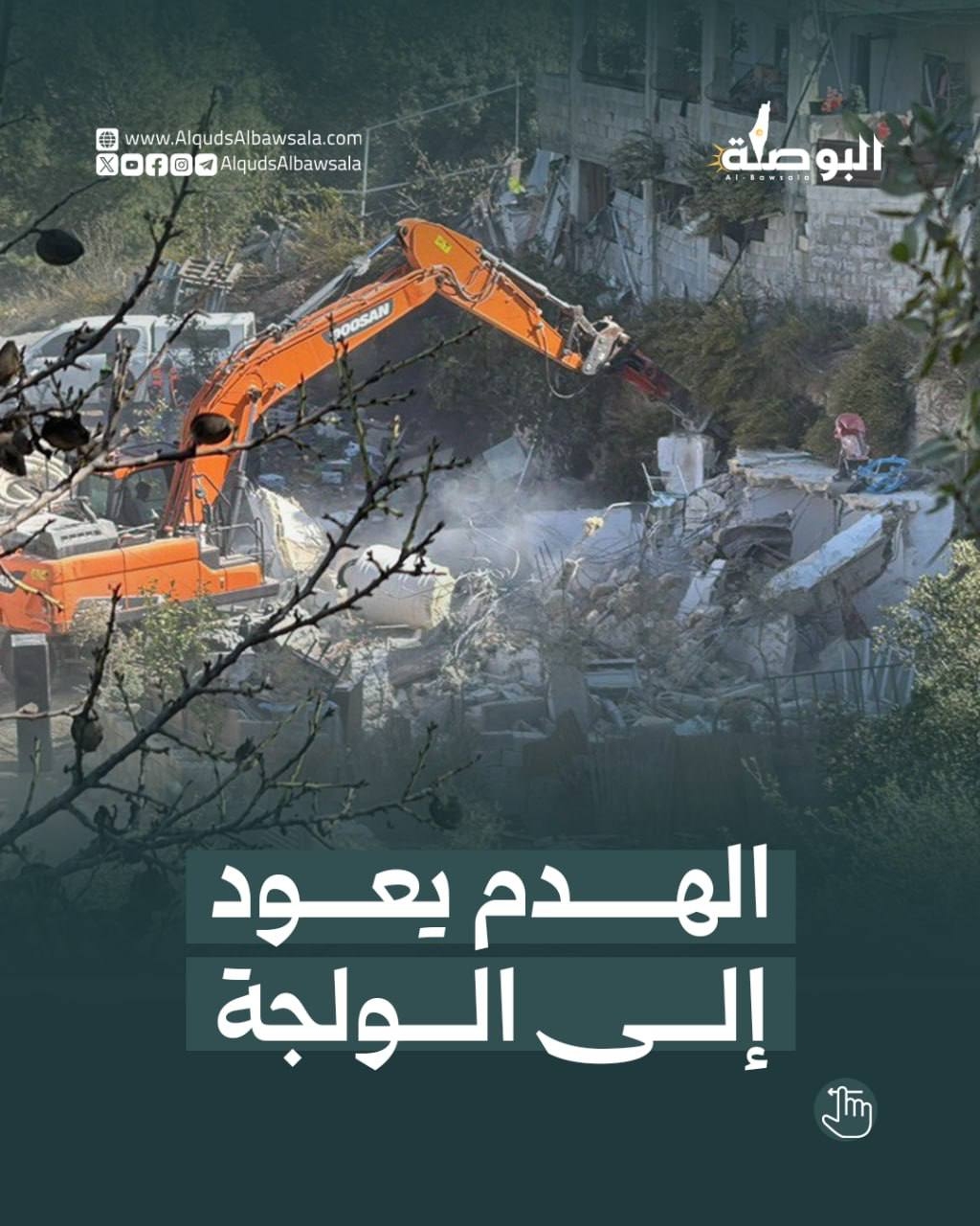 وبذلك ترتفع عمليات الهدم في الولجة منذ بداية العام الجاري إلى 3، حيث شُردت عائلة المقدسية نسرين خالد أبو رزق -مكونة من 5 أفراد-، بعد هدم منزلها في يناير المنصرم.