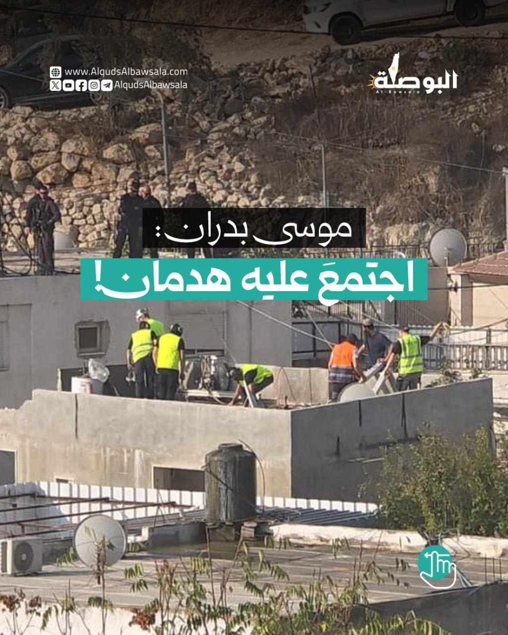 للمرة الثانية يُهدم منزله.. اقتحمت طواقم الاحتلال، صباح اليوم، حي البستان في بلدة سلوان جنوب المسجد الأقصى، وأغلقت مداخل الحي؛ تمهيدا لإكمال هدم منزل المقدسي موسى بدران.