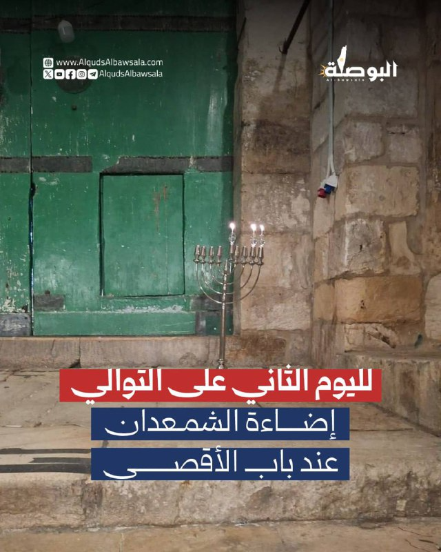 لليوم الثاني.. إضاءة الشمعدان عن باب الأقصى