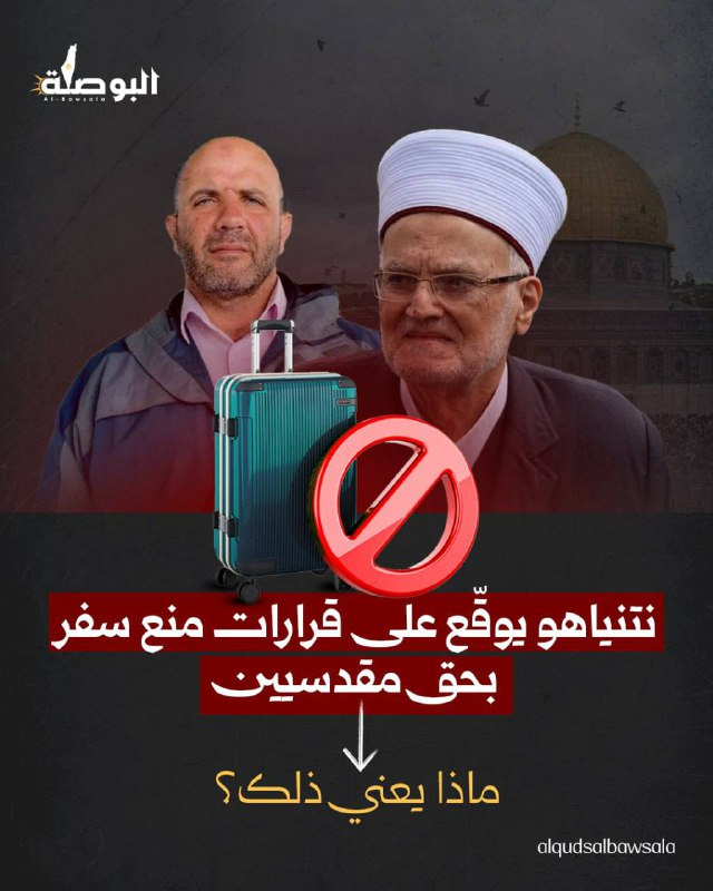 أصدر مكتب وزير داخلية الاحتلال قرارات تجديد منع سفر خارج فلسطين بحق عدة مقدسيين، عُرف منهم خطيب المسجد الأقصى الشيخ عكرمة صبري، والأسير المحرر يعقوب أبوعصب وزوجته. لكن اللافت في القرارات أنها موقعة من قِبل رئيس وزراء الاحتلال (بنيامين نتنياهو).