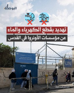 أخطرت سلطات الاحتلال، الأحد الماضي، المباني التابعة لوكالة غوث وتشغيل اللاجئين الفلسطينيين (الأونروا) داخل القدس المحتلة، بقطع الكهرباء والماء عنها في غضون 15 يوما، وذلك استكمالا لقانون حظر الوكالة وأنشطتها -الذي صادق عليه الكنيست-.