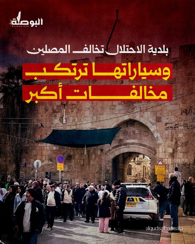 في وقت تخالف فيه المصلين بحجة إعاقة الطريق والوقوف في أماكن مخالفة، وقفت سيارة بلدية الاحتلال نفسها في منتصف الطريق عند مدخل باب الأسباط، اليوم، في وقت ذروة خروج المصلين من المسجد الأقصى المبارك، ما أدى إلى ازدحام وتعطيل حركة المصلين.