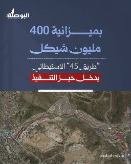 باشرت سلطات الاحتلال تنفيذ مشروع “طريق 45” الاستيطاني بميزانية تُقدّر بنحو 400 مليون شيكل، في خطوة تهدف إلى تكريس ضم المستوطنات شمال القدس وشرق رام الله وربطها بمدينة القدس المحتلة.