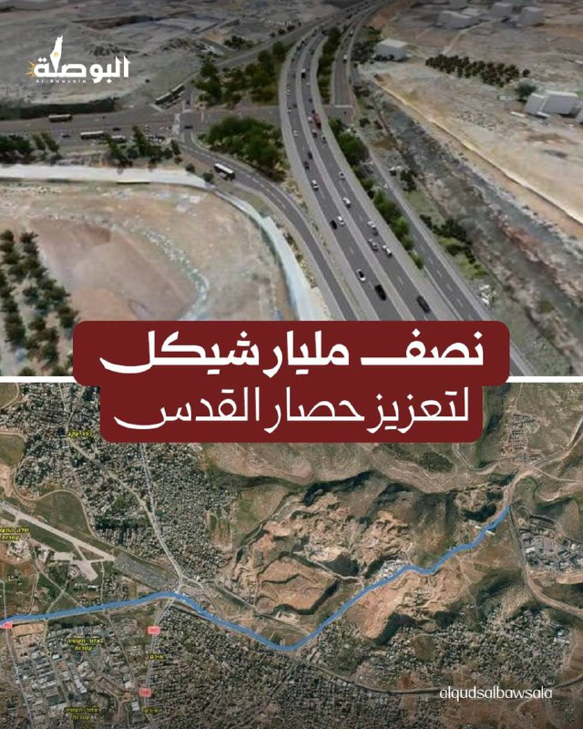 ⬅️سيؤدي هذا المشروع إلى مصادرة أراضٍ فلسطينية إضافية من حزما وجبع ومخماس شمال شرق القدس، كما سيُعمق عزلها عن القدس، ويطرد التجمعات البدوية القائمة على أطرافها.