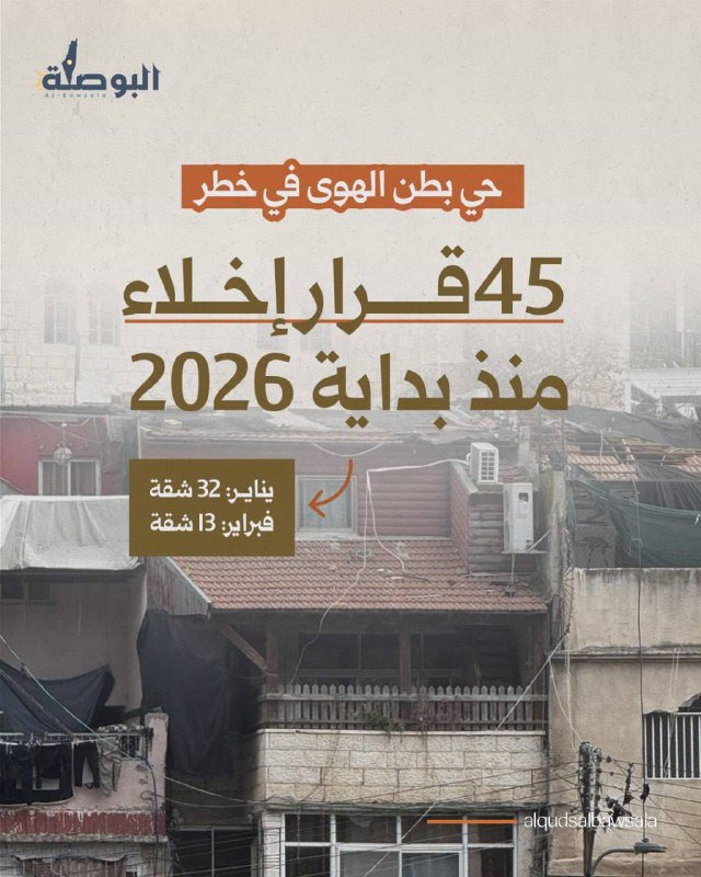 ⚠️ما يعني أننا مقبلون في الأيام القادمة على عملية تهجير جماعية ستطال 45 شقة سكنية، ليسكنها المستوطنون بعد ذلك.