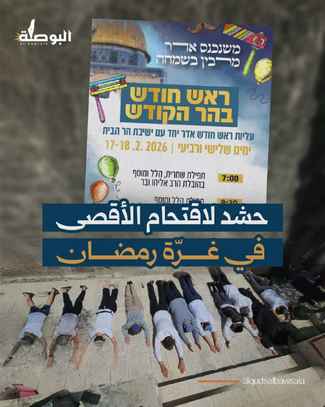 خطير| حشدت جماعات الهيكل أنصارها لاقتحام المسجد الأقصى؛ احتفالا ببداية الشهر العبري الجديد، في 17+18 الشهر الجاري، حيث يمكن أن يوافق الاقتحام الثاني غُرّة شهر رمضان المبارك، أي يوم الأربعاء المقبل.