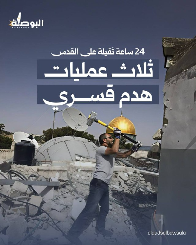 خلال 24 ساعة، شهدت القدس المحتلة هدم قسري لثلاث عائلات فلسطينية، كان آخرها هدم ذاتي في حي عين اللوزة ببلدة سلوان، حيث أُجبر المقدسي معتصم أبوتايه على هدم منزله تحت ضغط إخطار الهدم.