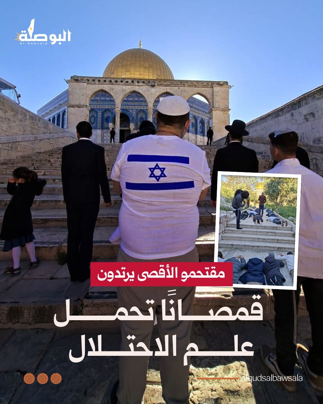 مقتحمو الأقصى يرتدون قمصانًا تحمل علم الاحتلال