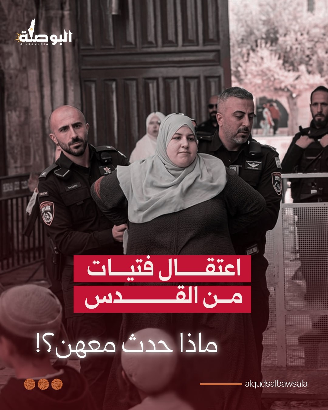 قال مكتب إعلام الأسرى إن قوات الاحتلال اعتقلت، أمس، مجموعةً من الشابات وطفلةً (12 عامًا) من ساحات المسجد الأقصى.