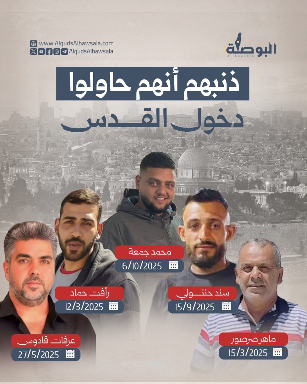 ⬅️قائمة محدّثة| منذ بداية العام الجاري 2025، قـ ـتل الاحتلال 5 عمّال -من حَملة الهوية الفلسطينية- دخلوا أو حاولوا دخول القدس المحتلة.