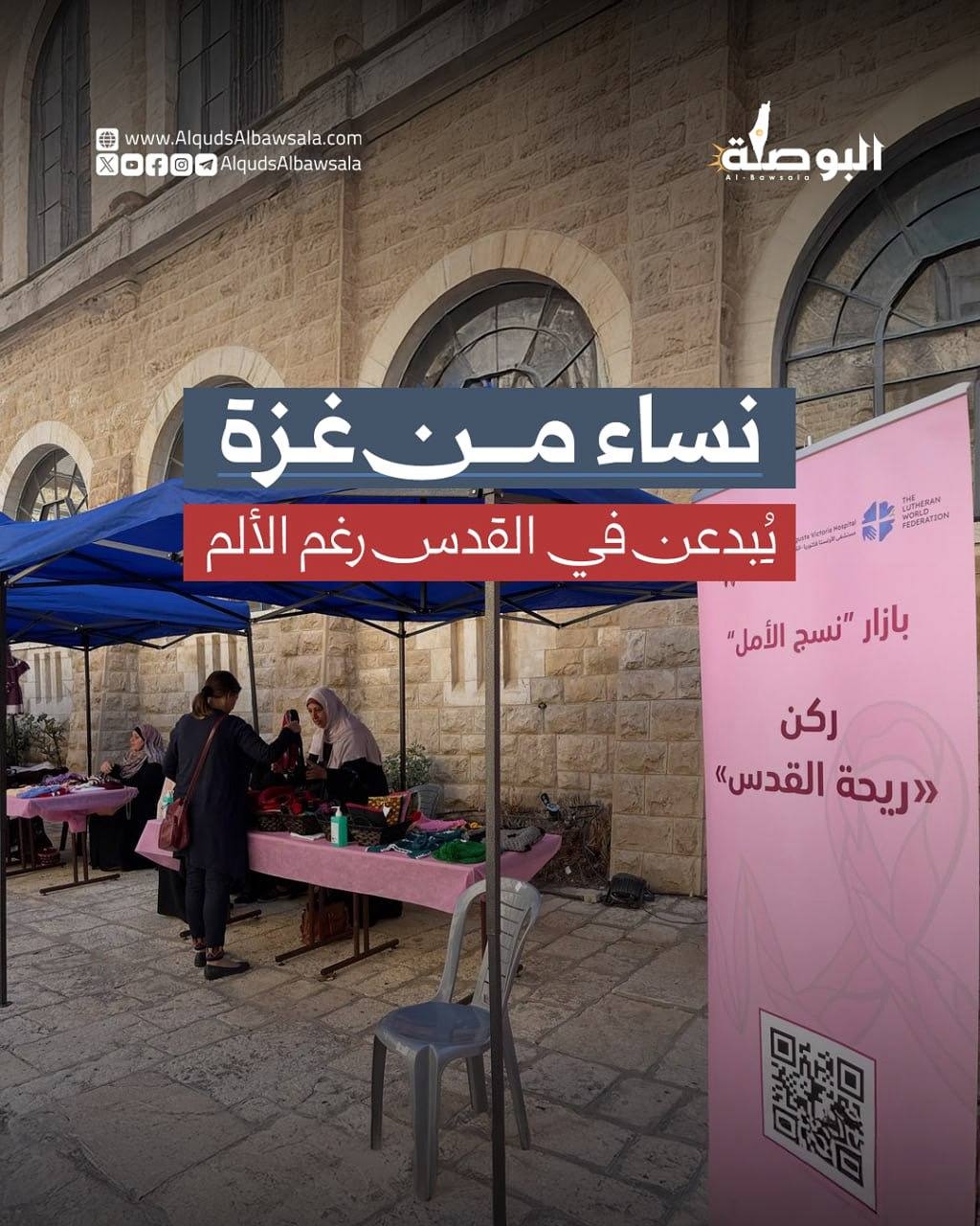 حيث عرضن منتجات صنعنها بأيديهن. يذكر أن عديدا من الغزيين علقوا في القدس المحتلة، بعد السابع من أكتوبر 2023، أثناء تلقيهم العلاج أو مرافقتهم لمرضى.