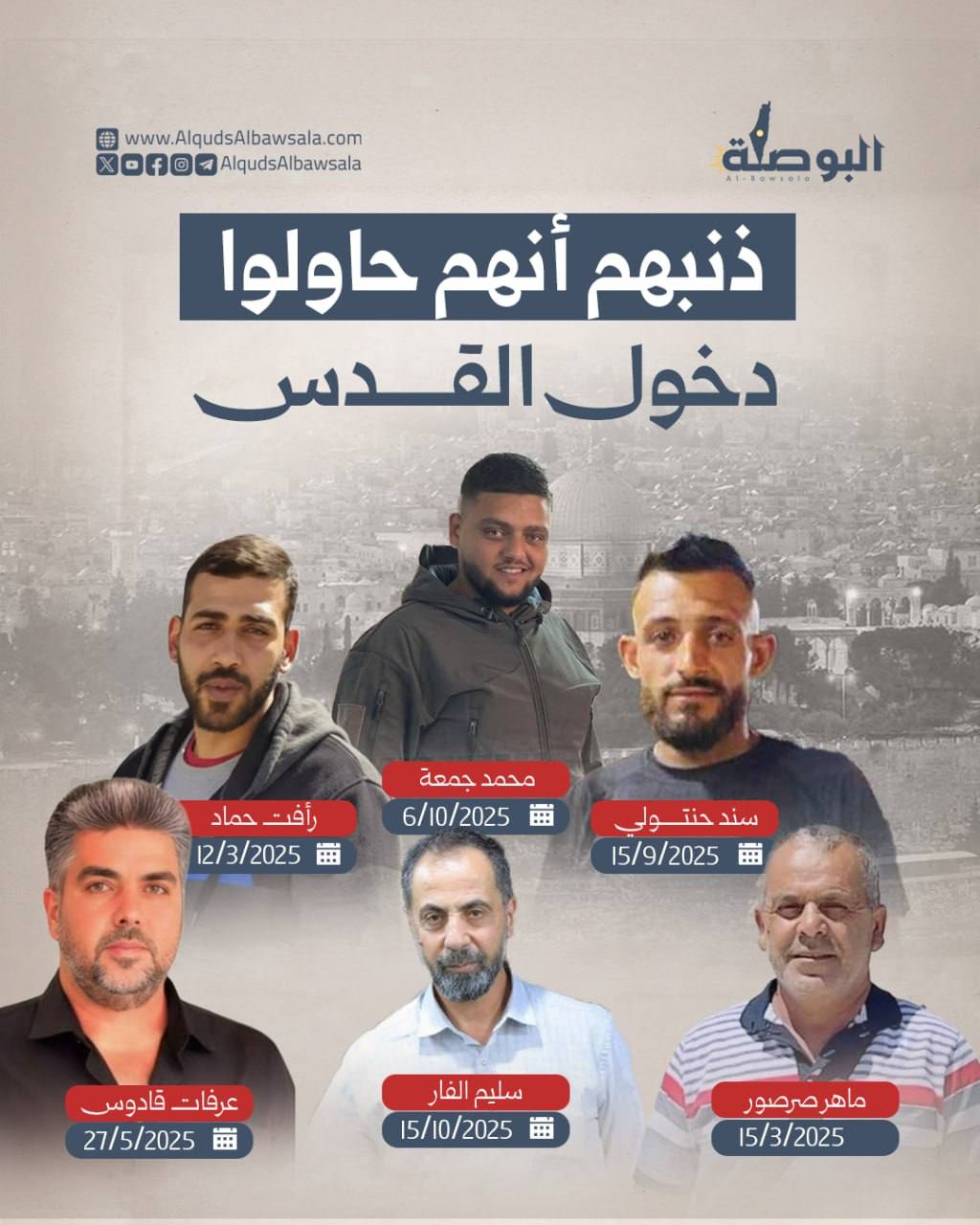 يذكر أن الاحتلال يمنع أهالي الضفة الغربية من دخول القدس، ويلاحق من يحاول أو ينجح بذلك. كما اعتقل الآلاف من حَمَلة الهوية الفلسطينية، منذ السابع من أكتوبر 2023، بتهمة دخولهم القدس دون تصريح.