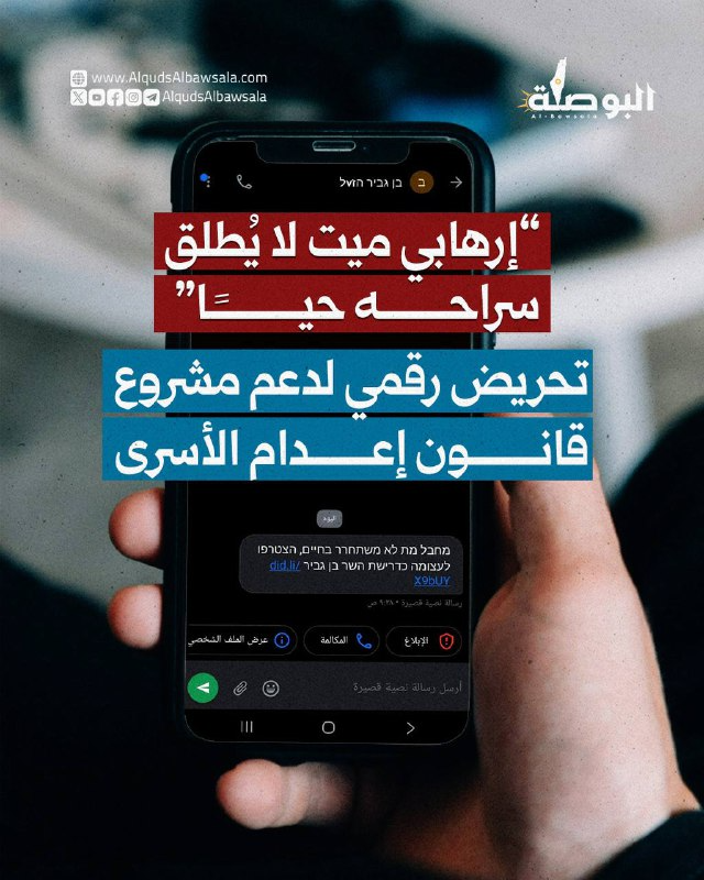 وتضمنت الرسائل عبارات تحريضية مثل: “إرهابي ميت لا يُطلق سراحه حيًا”، داعين المتلقين إلى التوقيع على عريضة تبناها وزير الأمن القومي لدى الاحتلال إيتمار بن غفير، تطالب الكنيست بالإسراع في المصادقة على مشروع القانون.