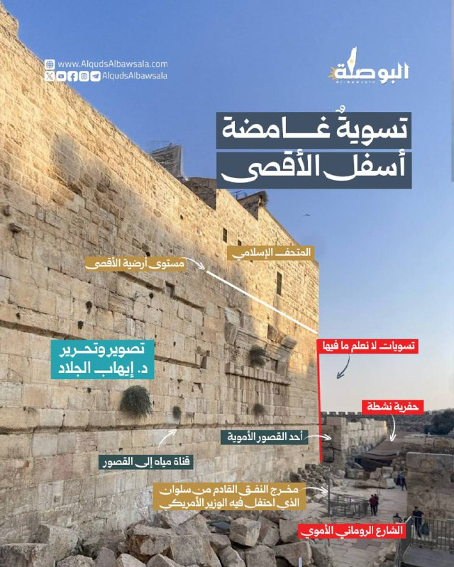 هل تعلم أن هناك تسوياتٍ أسفل المسجد الأقصى، وتحديدا عند الزاوية الجنوبية الغربية، بين المتحف الإسلامي والمصلى القبلي، ويتكتم الاحتلال عن حالها تماما.