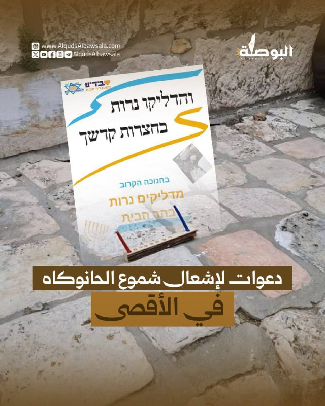 بشكل صريح وعبر حسابها الرسمي، دعت إحدى جماعات الهيكل المزعوم أنصارها إلى إشعال الشموع -جماعيا- داخل المسجد الأقصى؛ احتفالا بعيد الأنوار اليهودي (الحانوكاه).