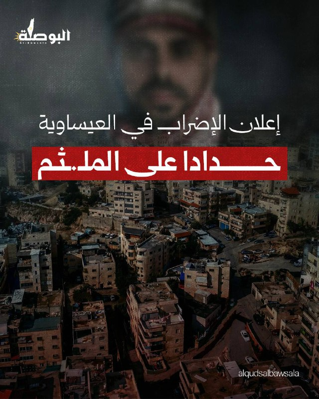 أعلنت القوى الشعبية والوطنية في العيساوية بالقدس المحتلة إضرابا شاملا في القرية، اليوم الثلاثاء، حدادا على الناطق باسم كتائب القسـ.ـام (أبوعبيـ.ـدة)، والذي أعلنت المـ.ـقاومة أمس عن ارتقائه.
