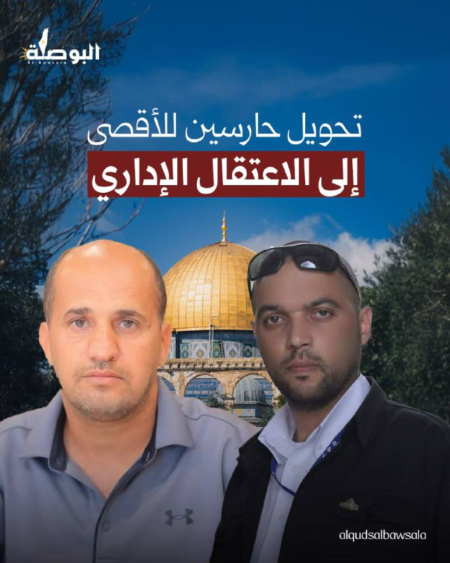 خطير| أكد مركز معلومات وادي حلوة أن وزير الحرب الإسرائيلي (يسرائيل كاتس) أمر بتحويل حارسي المسجد الأقصى، وموظفي دائرة الأوقاف الإسلامية الأردنية عبد الرحمن الشريف ومهدي العباسي إلى الاعتقال الإداري لمدة 4 أشهر.