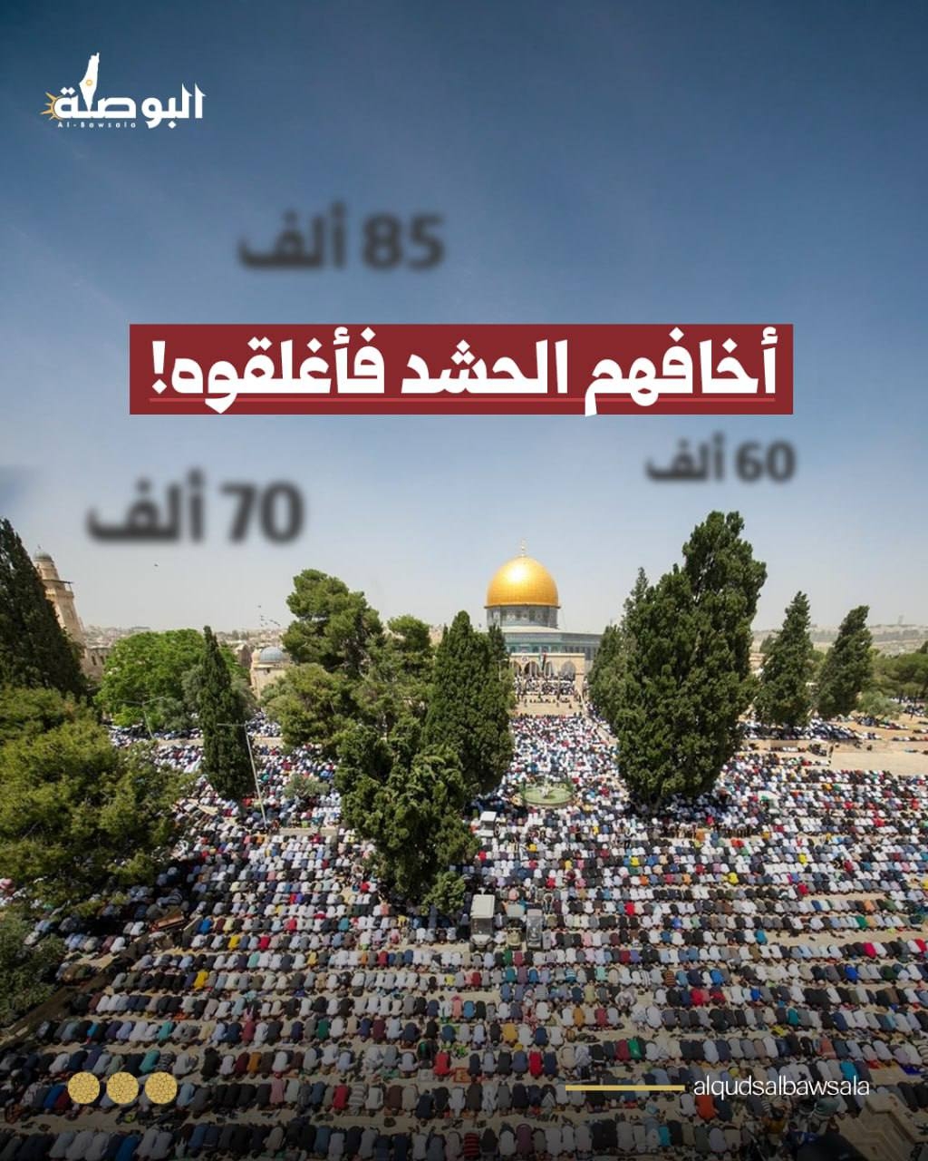 هذه الأرقام والحشود الكبيرة من المصلين، من الرجال والنساء والأطفال وكبار السن، لا يريدها الاحتلال؛ فتذرّع بالحرب على إيران وإعلان "حالة الطوارئ" لإغلاق المسجد الأقصى في وجه المصلين.