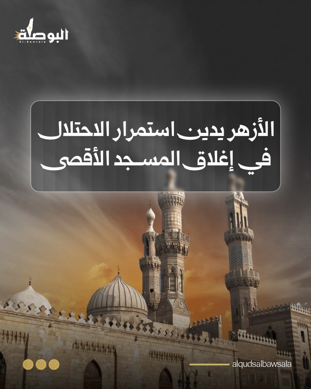 قال الأزهر الشريف إن استمرار الاحتلال الإسرائيلي في إغلاق المسجد الأقصى المبارك يمثل "اعتداء مرفوضا وغير أخلاقي"،