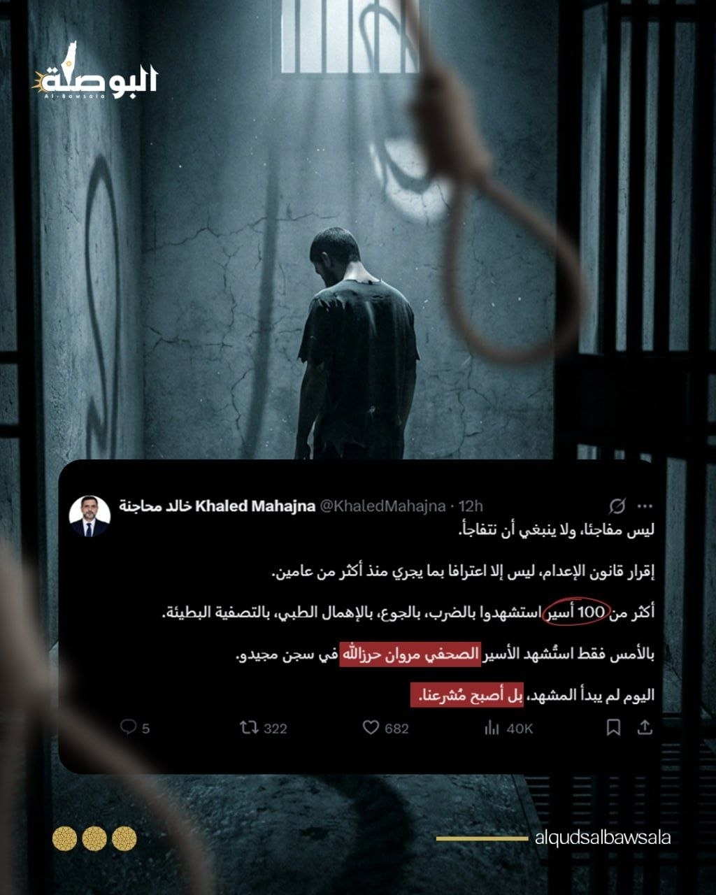 خالد محاجنة المحامي والحقوقي المتخصص في مجال الدفاع عن الأسرى يعلق على مصادقة الكنيست الإسرائيلي بالقراءتين الثانية والثالثة، على قانون إعدام الأسرى الفلسطينيين.
