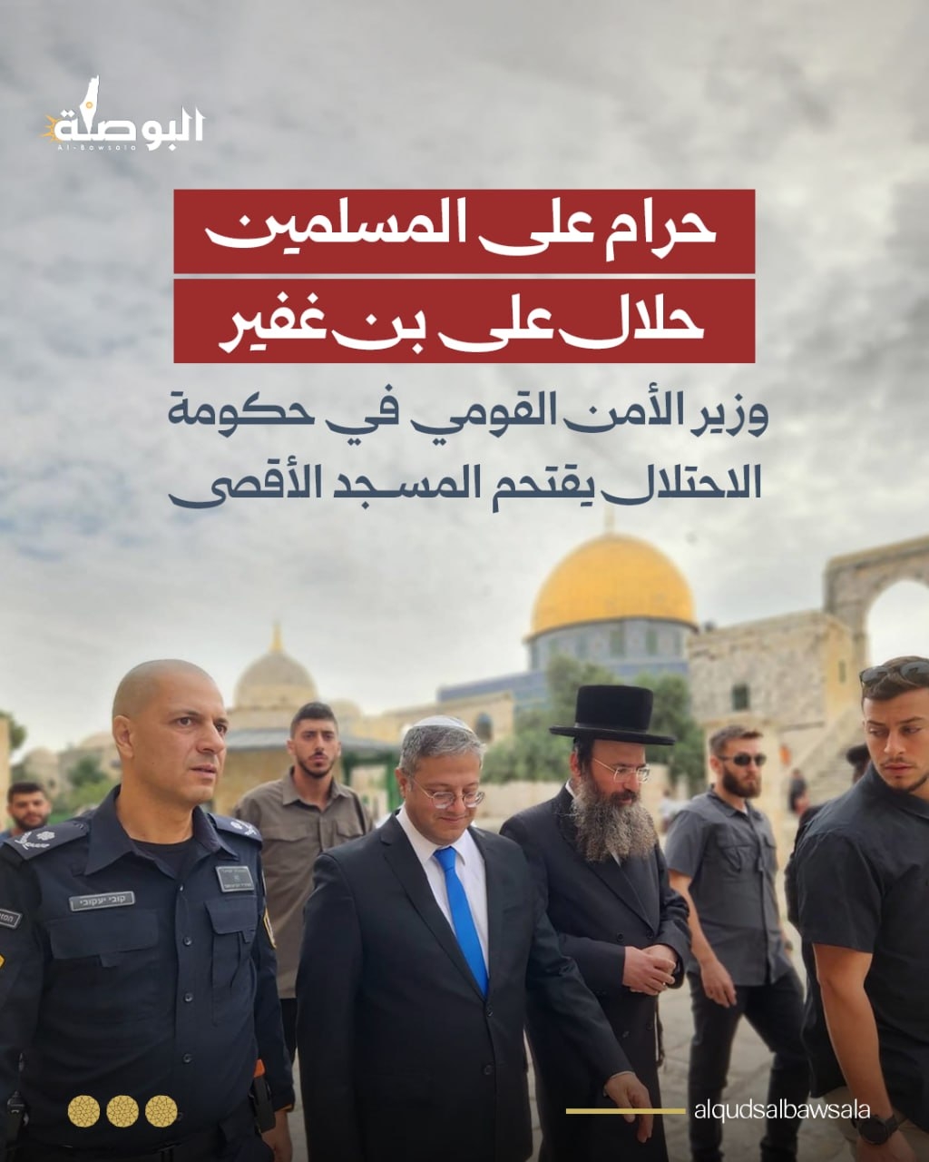 أفادت دائرة الأوقاف الإسلامية في القدس بأن وزير الأمن القومي في حكومة الاحتلال إيتمار بن غفير اقتحم المسجد الأقصى مساء اليوم الاثنين، في ظل إغلاق المسجد بشكل كامل أمام المصلين بحجة طوارئ الحرب