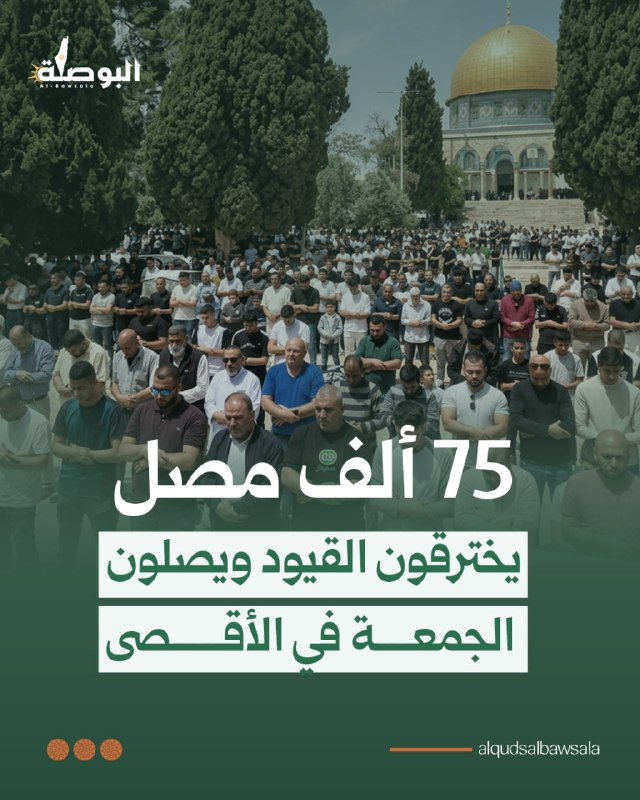 وقالت مصادر محلية إن نحو 75 ألف مصل أدوا اليوم صلاة الجمعة في الأقصى.