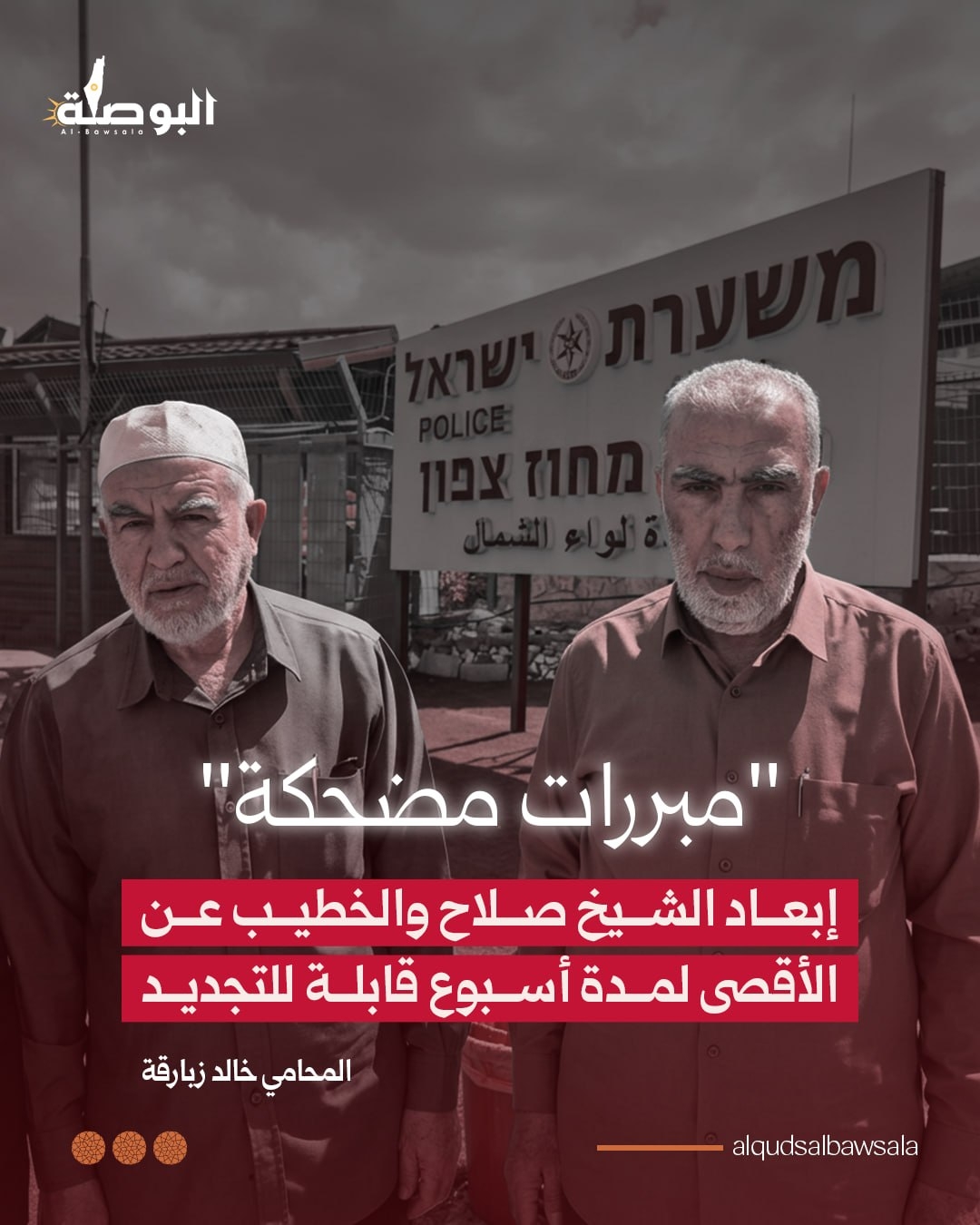 سلمت شرطة الاحتلال الإسرائيلي الشيخ رائد صلاح والشيخ كمال الخطيب قرارًا بإبعادهما عن المسجد الأقـصى لمدة أسبوع، مع إمكانية التجديد لمدة ستة أشهر.